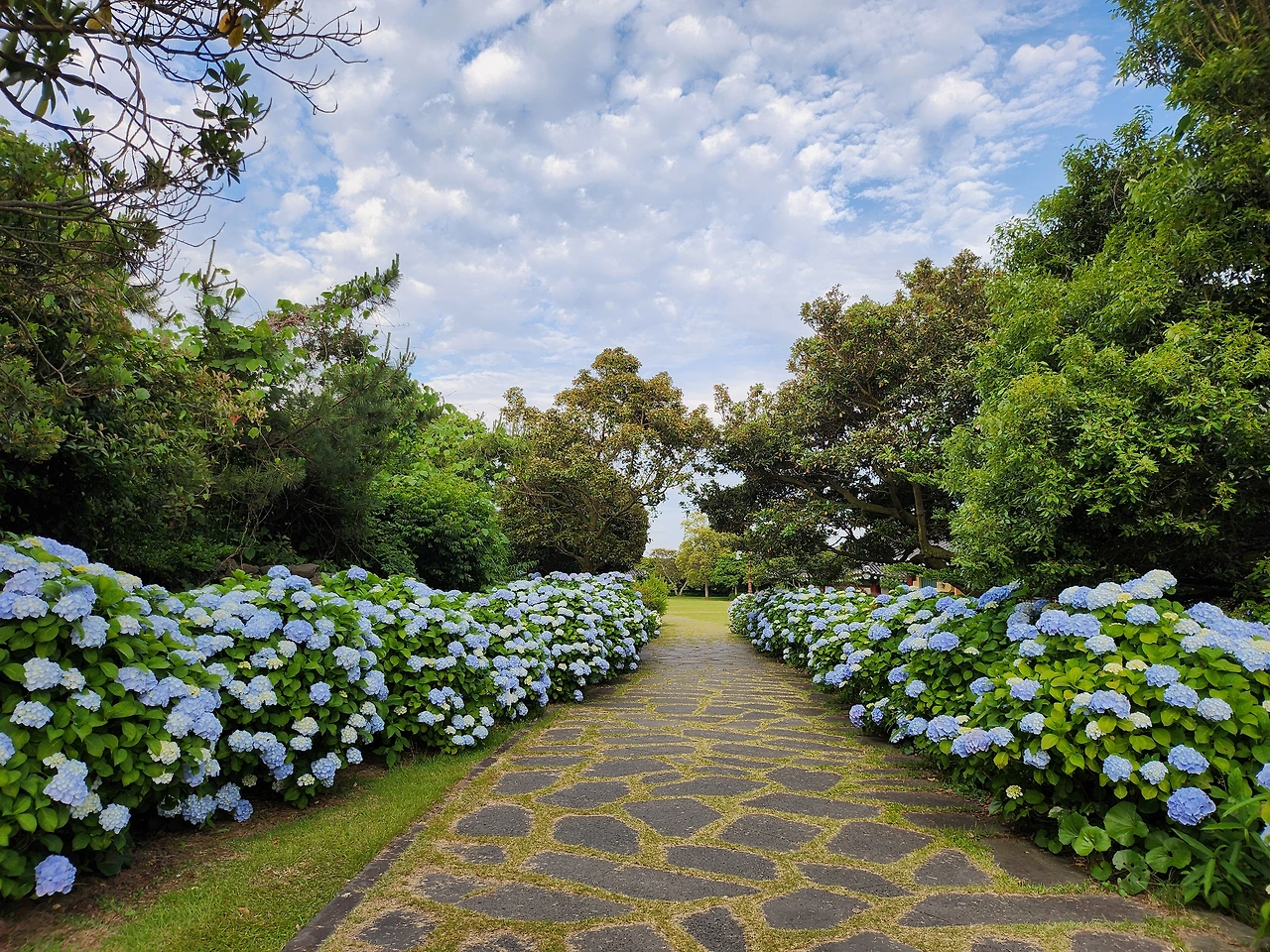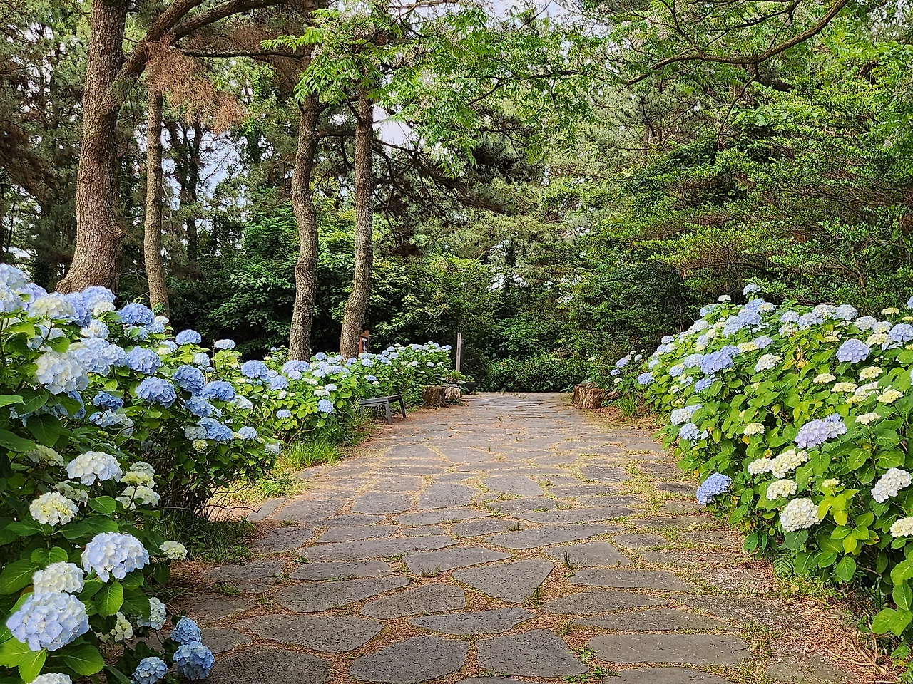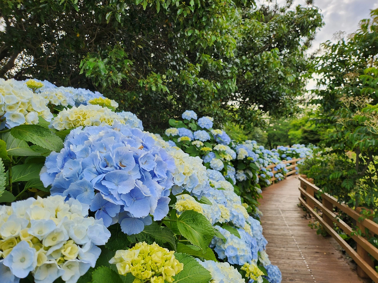 특징이라면 푸른 수국만으로 가꿔진 데다 해맑은 새소리 덤으로 즐길 수 있어서 꼭 찾는 곳이다.