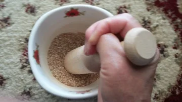 김밥 달인 식대로 이번엔 직접 절구질을 하며 영화도 두 편 보면서 세월없이 빻아서 체질을 해 아주 고와진 입자를 얻었네요.