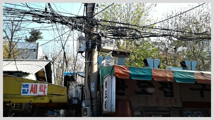 얼기설기 어지러운 전선줄이 늘어져 있고 보일러 시설물이 그대로 드러나보였다.