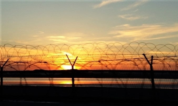화려한 일몰 풍경마저 철조망으로 가로막고 있는 자유로라니, 이름값도 못하는 이게 대체 무슨 경우람.