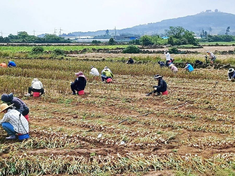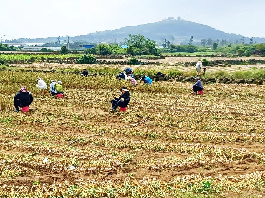 대정벌 한 촌락에 들어서니 거의 모든 밭자락마다 마늘이 한창 수확철, 눈코 뜰 새 없이 바쁜 현장이었다.