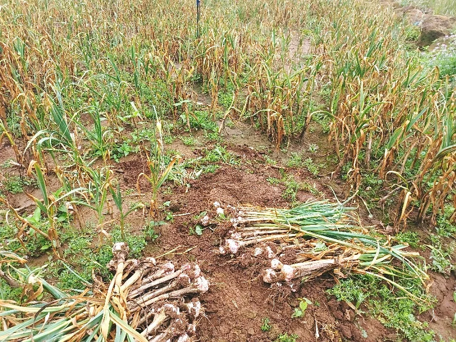 아직 안 캔 마늘은 이미 누런 잎이 져 있었다.