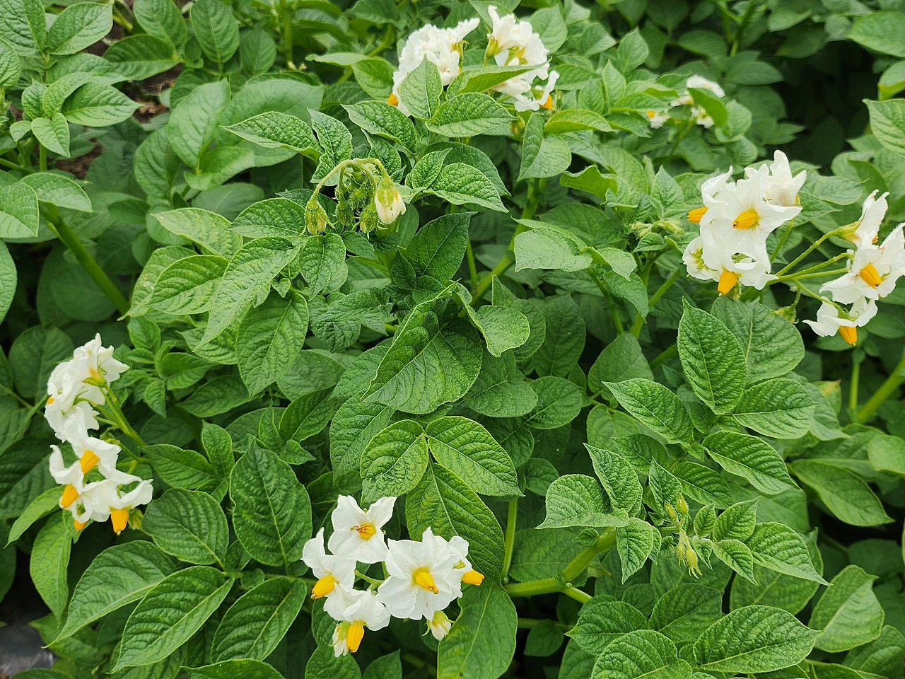 마른장마 중인 하늘빛은 나른하나 들판은 기갈 센 아낙처럼 서슬이 시퍼렇다. 산기슭과 도로 사이로 솔게 이어지는 밭 자락에는 황토 속살 가리며 무성한 담배밭. 웃자란 도라지 밭엔 보라꽃이 제철 맞아 한창이다. 죽죽 뻗은 옥수숫대마다 겨드랑이에 서너 개씩 끼고 있는 옥수수자루가 꽤 실해 보인다. 무엇보다 감자바위 강원도답게 온데 감자밭이다. 밭고랑마다 자욱하게 깔려있는 하얀 감자꽃. 죄다 흰 감자만 심은 모양이다.