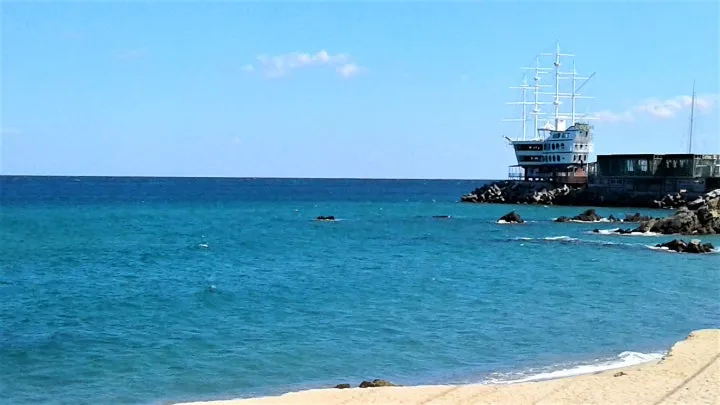 부대시설로 범선을 본뜬 범선횟집도 세웠다더니 전망 좋은 해변 갯바위 평상 삼아 과연 떡허니 자리 잡았습디다.