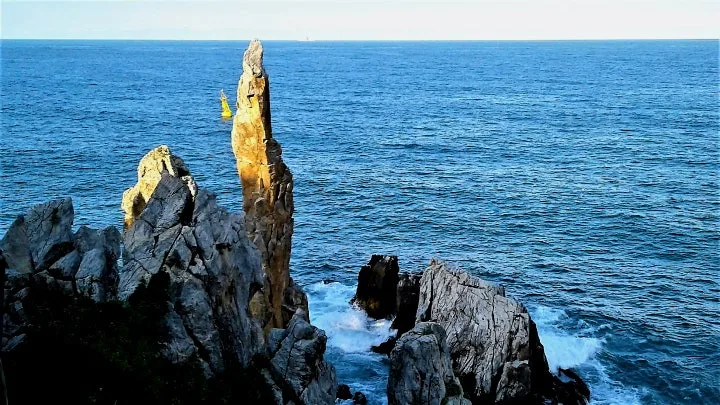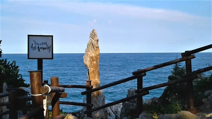 촛대바위 일출이 애국가 첫 소절의 배경화면으로 나온 바 있어 유명세를 치르기 시작했소이다만.