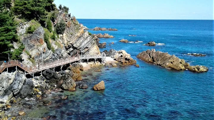 추암과 연결시켜 바다 위 절벽 사이를 잇는 출렁다리 걷노라면 푸른 물결과 해안 암벽 사이로 마치 파도 위를 유영하는 특별한 느낌도 받았소이다.