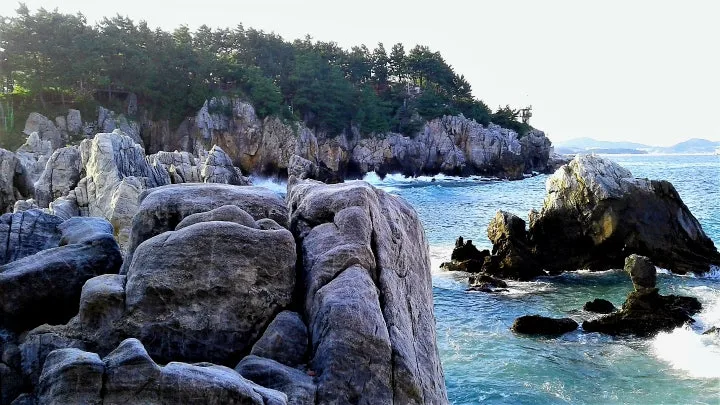 해암정 둘러보고 소나무 사잇길로 들어서면 이번엔 푸른 바다 배경으로 자욱이 돌숲이 드러나더이다.