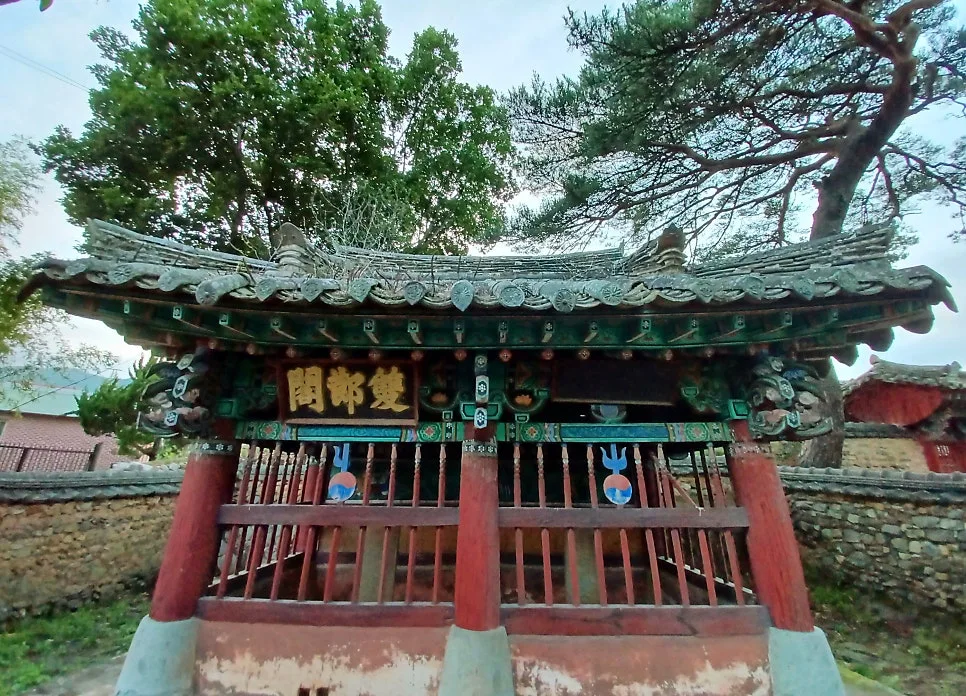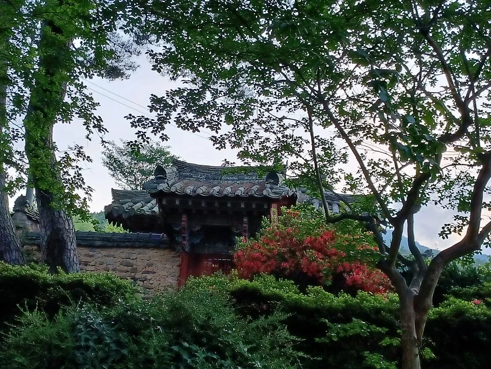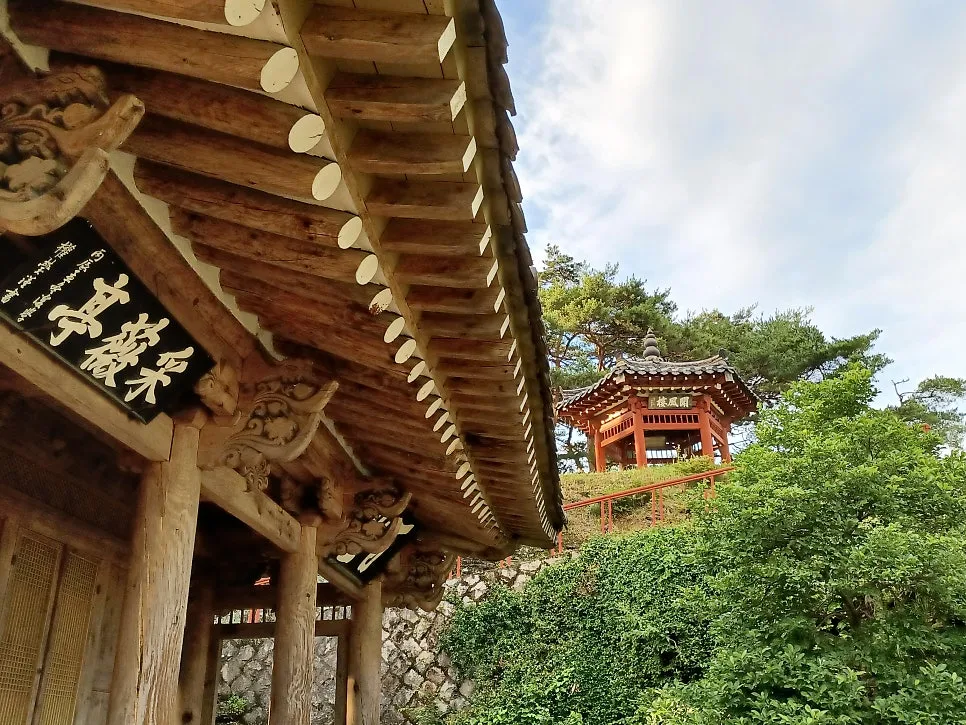 뒤란 쪽으로 돌아 절벽 위 청풍대에 오르면 언덕을 감싼 소나무 점잖으나 문풍루라는 육각정 혼자 뜬금없이 홀로 붉다.
