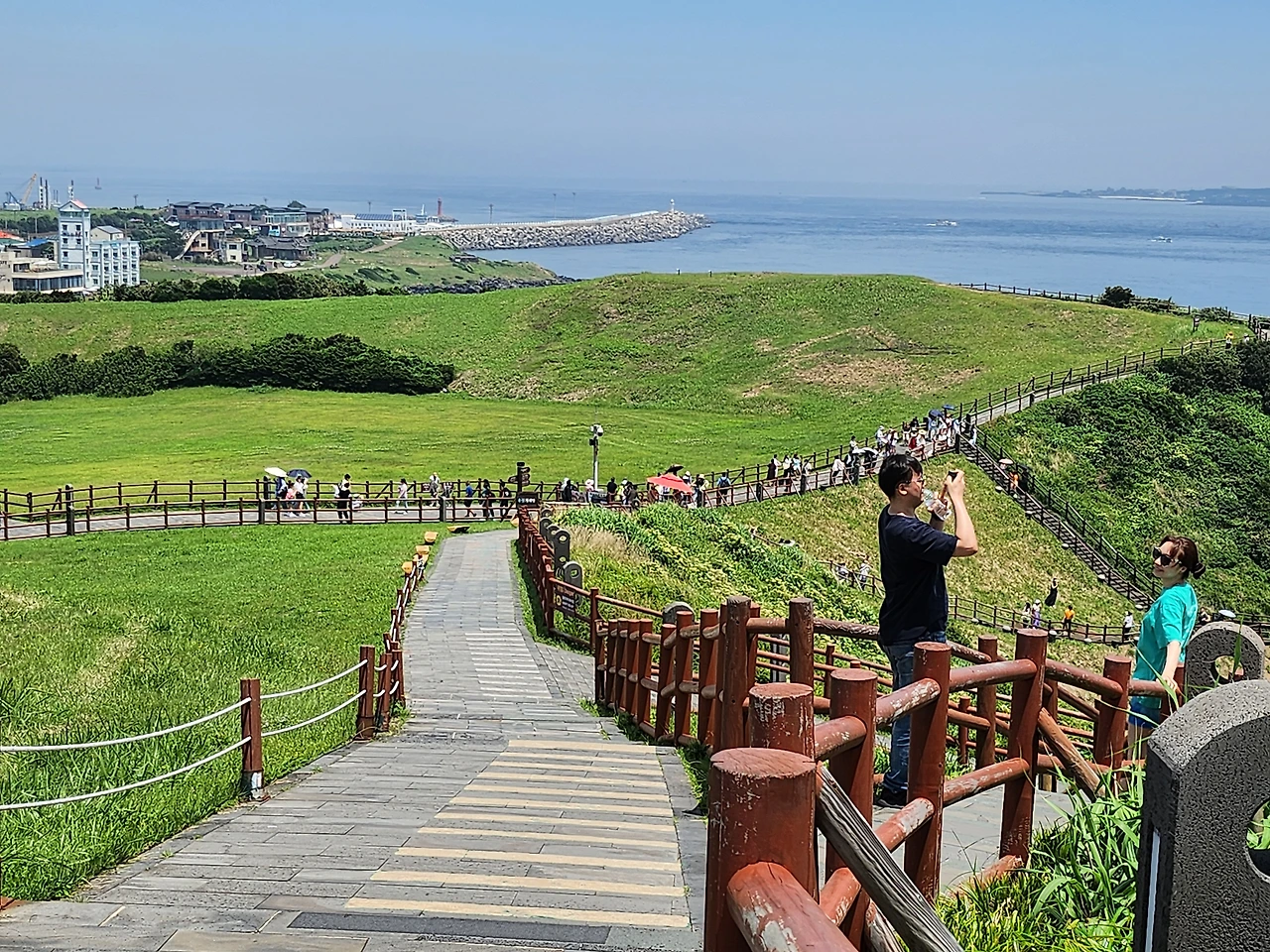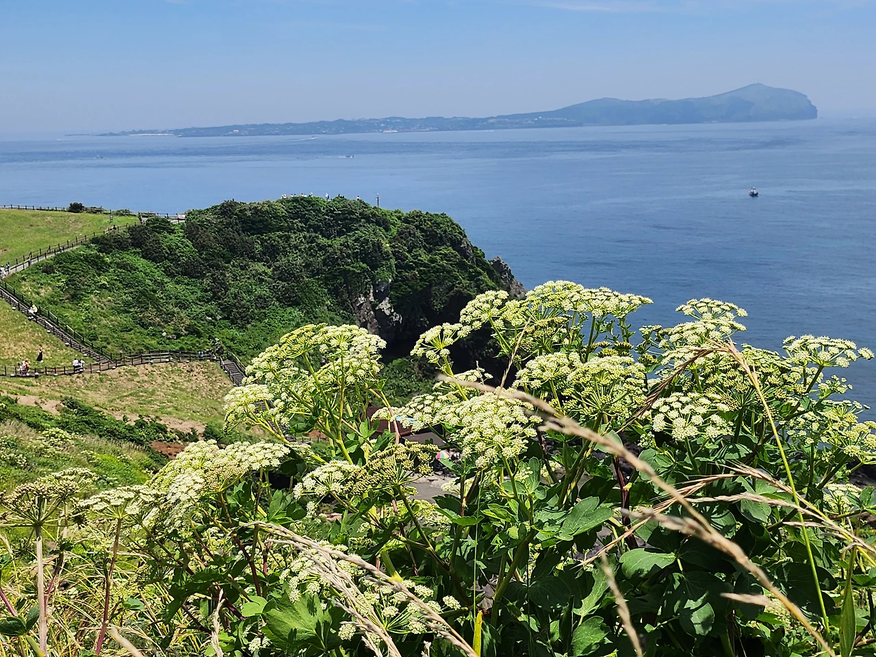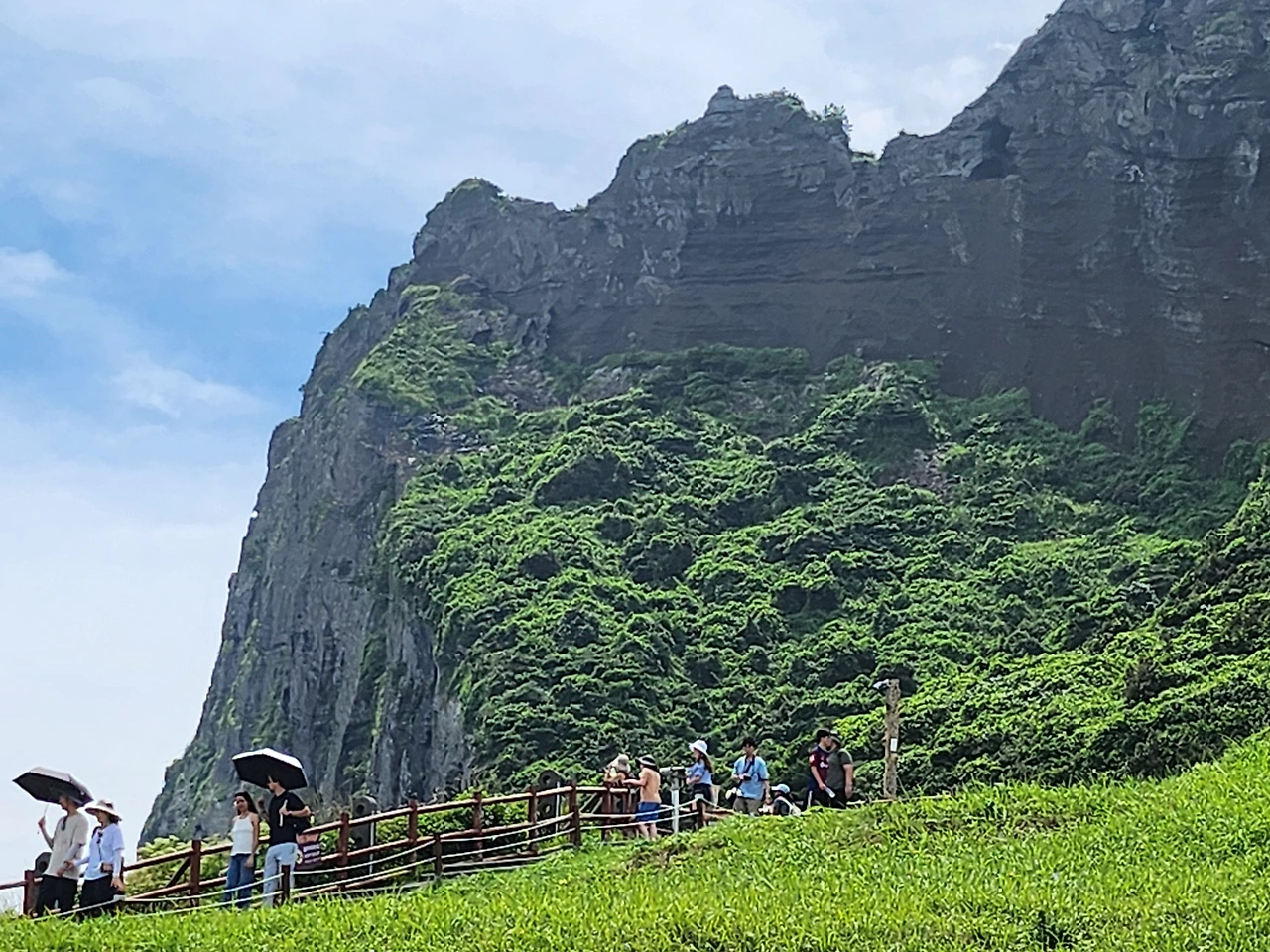 언제나 그렇듯 한국인과 중국인 관광객이 반 반에 약간의 일본인 대만인과 의외로 많은 백인들이 찾는 일출봉이다.