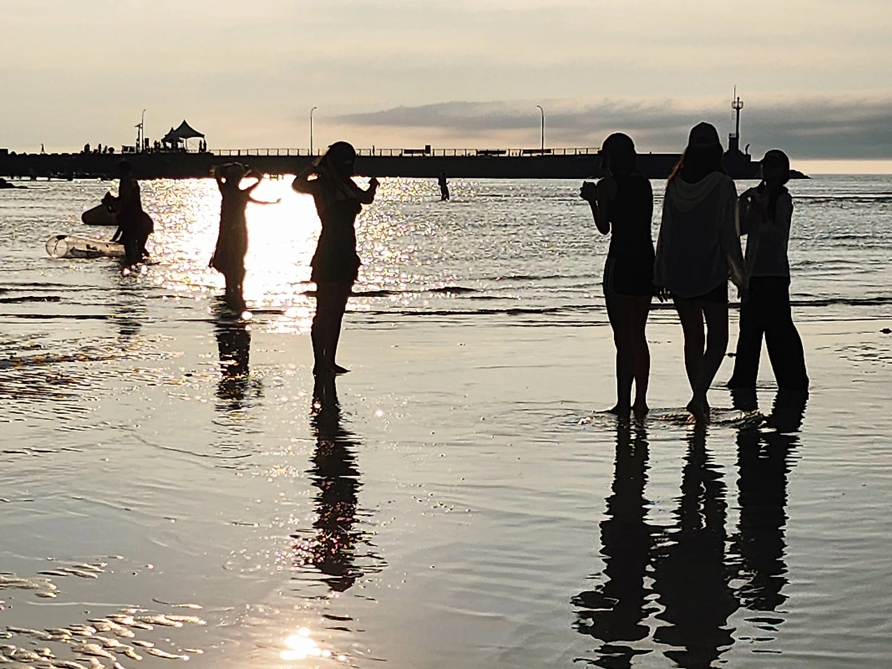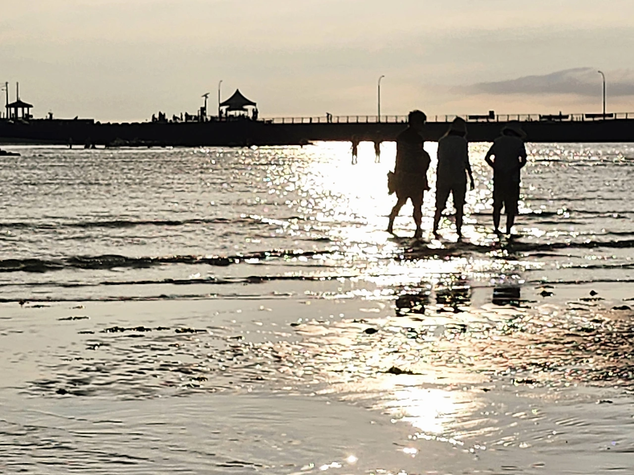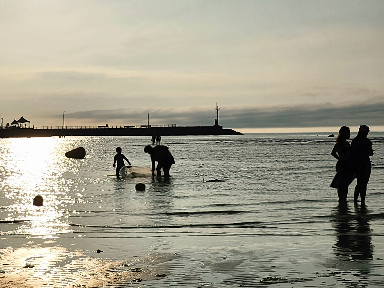 일곱 시에 해수욕장이 폐장되므로 물에서 철수하라는 안내방송이 떴다.