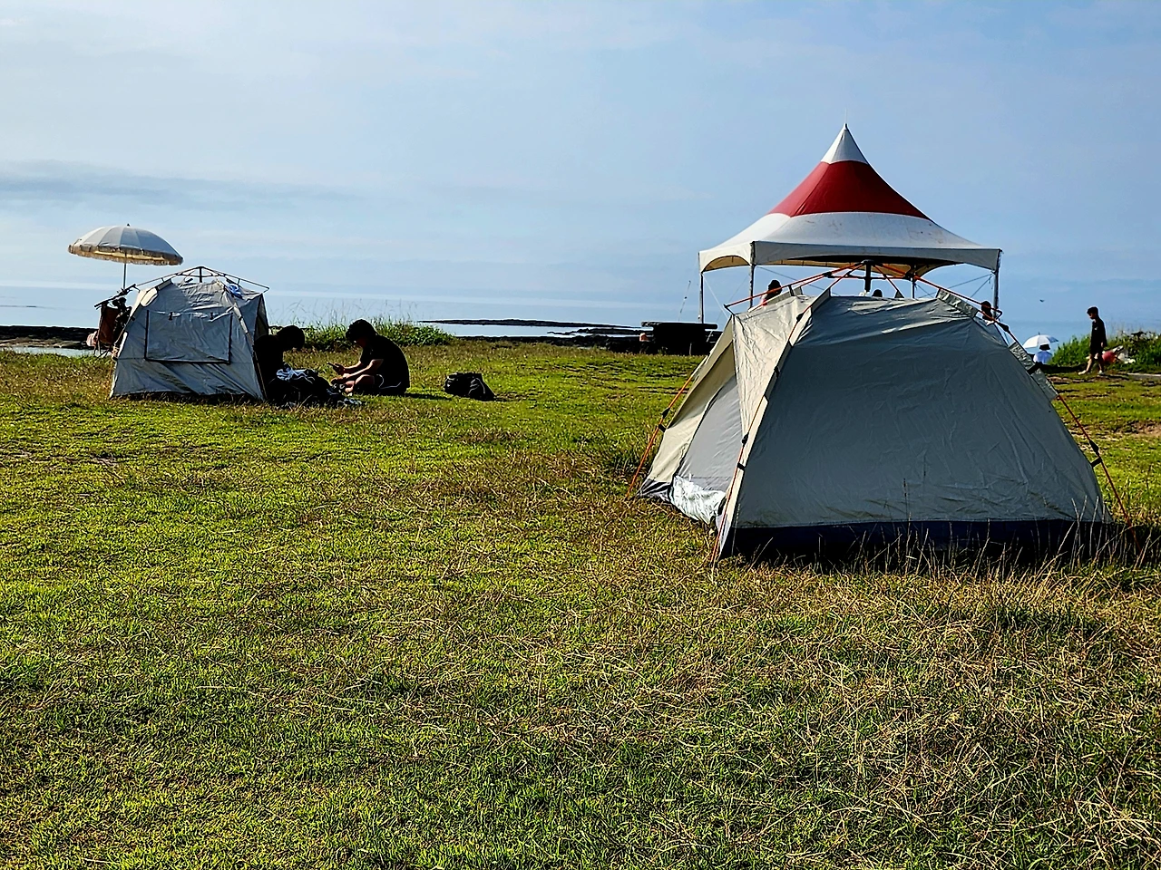 비치파라솔은 죄다 접혀있고 텐트 아래 의자들도 포개져 있었다.
