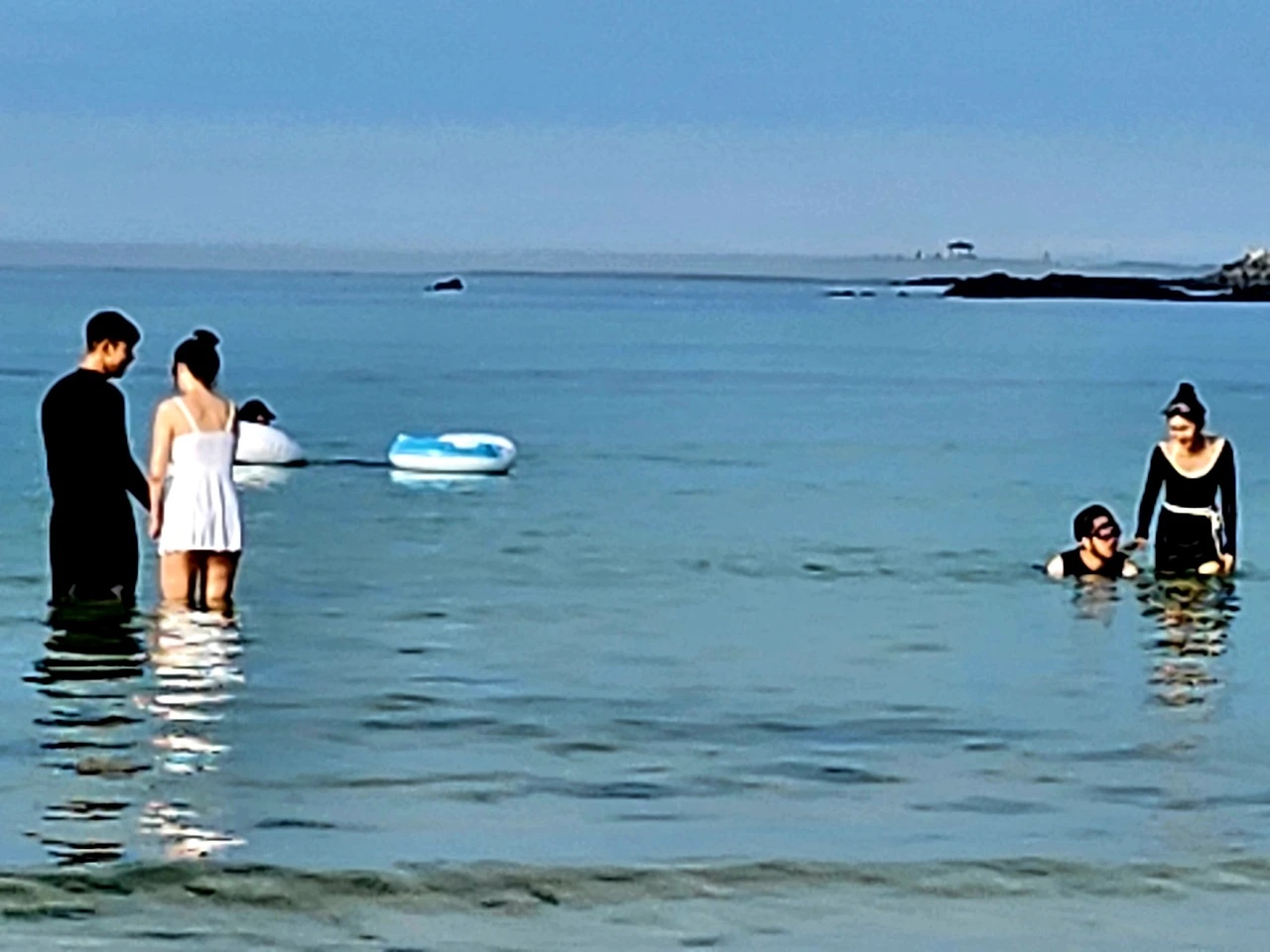 만조 때라도 바닷물이 깊이 들이차지 않아 아이들과 놀기 안전한 바다.