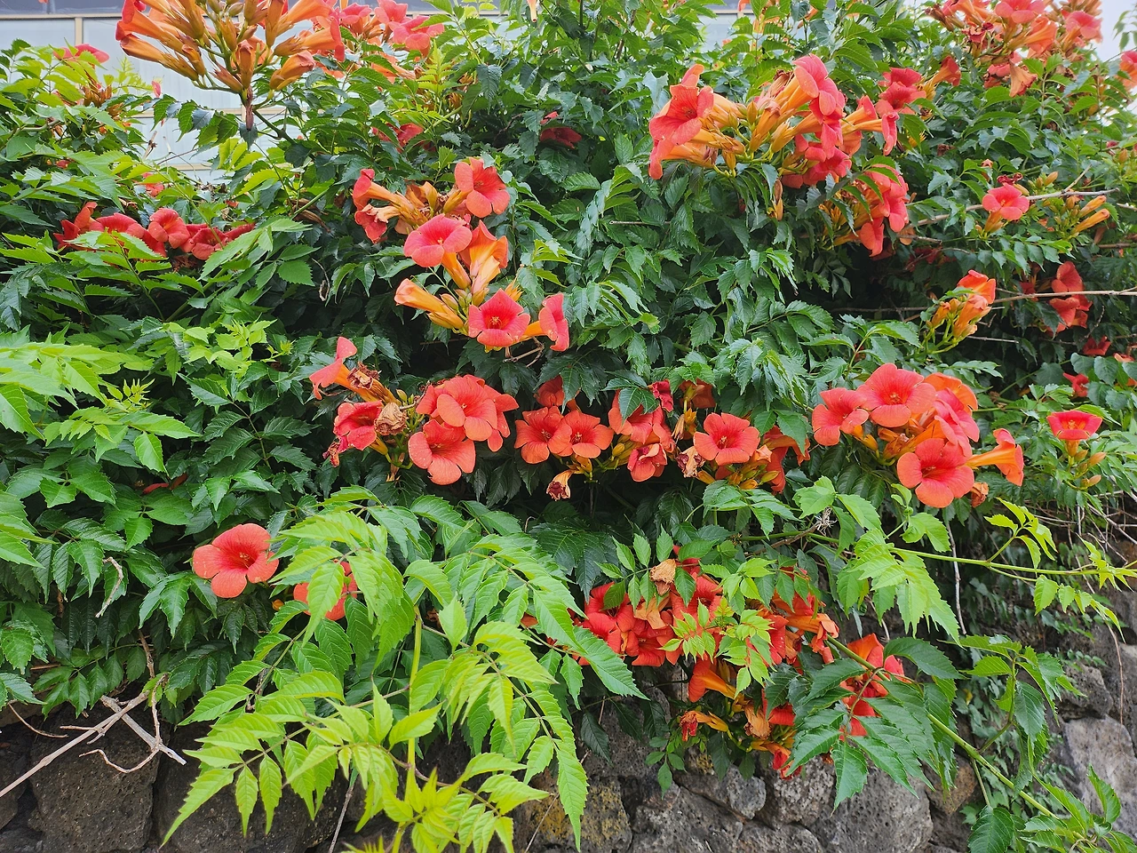 담장에 휘늘어진 능소화꽃 소담하게 피었으며 장독대 주변에는 하느작대는 원추리꽃 참나리꽃이 눈길 사로잡았다.