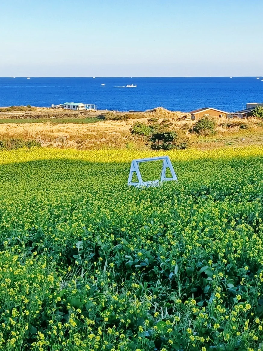 그렇게 걸어가면서도 만개한 유채꽃밭에 홀려 사진 찍어대고 공중의 갈가마귀 군무도 찍고 또 돌담도 찍고....