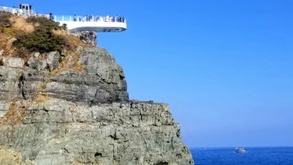 오륙도 공원에서 스카이워크 유리바닥에도 올라보고 이기대 쪽으로 방향 잡아 해안선 따라 걷노라면 바로 옆에서 파도 하얗게 밀려와 부서지며 튀어 오르는 물보라에 젖기도.