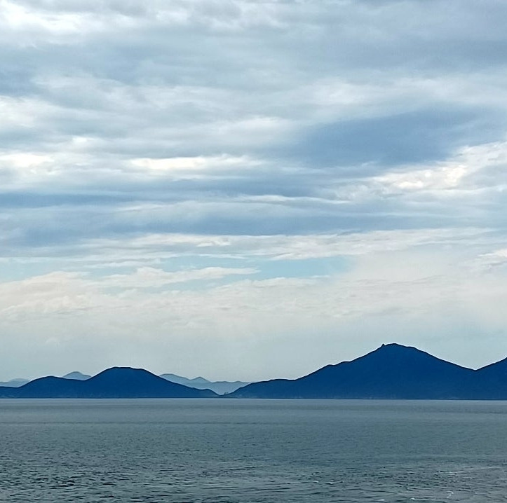 파도가 쉼 없이 들이치며 보얗게 일구는 물보라로 김해 쪽에는 해무가 어린듯하다.