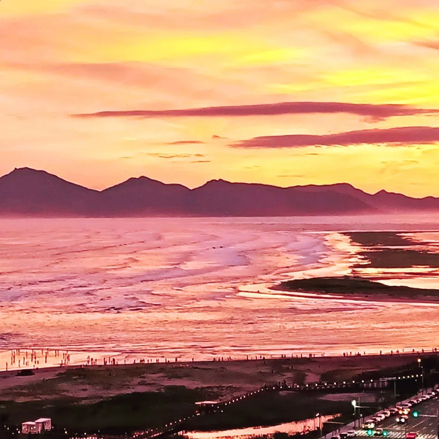 푸른 하늘 색조 시시각각 변하며 오묘하고 황홀한 퍼플에서 핑크로 금빛으로도 바뀐다.