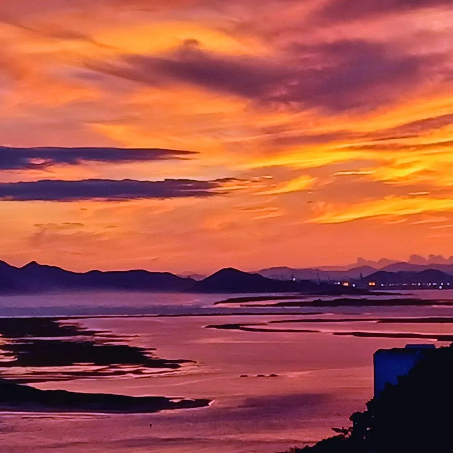 영광의 순간이듯 찬연하다가, 분노의 눈빛처럼 활활 타다가, 황녀 드레스인 양 화려하다가, 마지막 몰아쉬는 숨처럼 처연스럽기 그지없는 낙조.