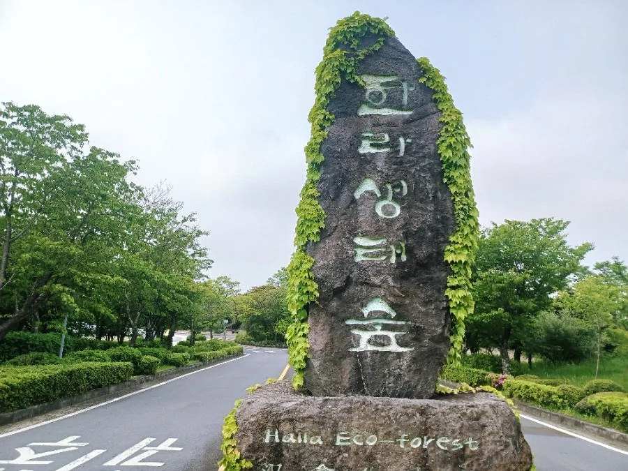 숲 터널 짙푸른 오일육 도로 굽이굽이 돌아 한라생태숲 앞에서 차를 내렸다.