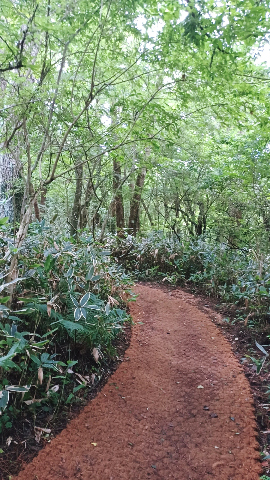 생태숲 내의 숫모르 편백숲길은 풀잎마다 이슬 맺힌 데다 피톤치드 향 온 데서 스며나 기분 쾌적하게 만든다.
