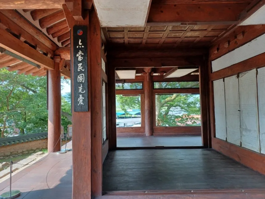 가운데에 있는 마루방 띠살문에는 창호지 단정하며 마루방을 둘러싸고 전후좌우 툇마루를 놓았다.