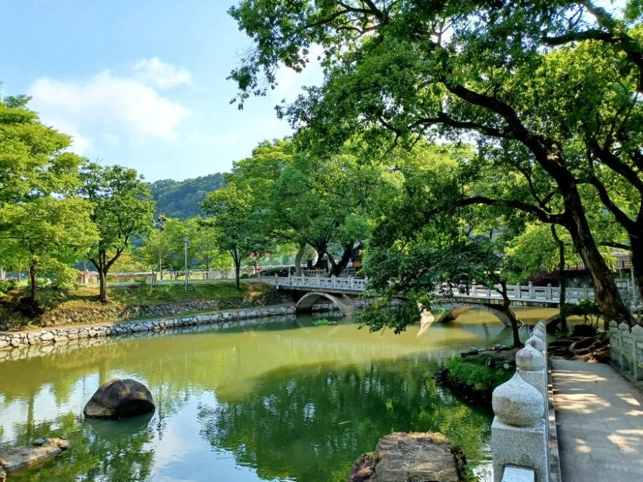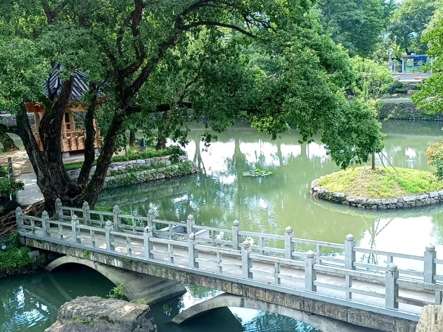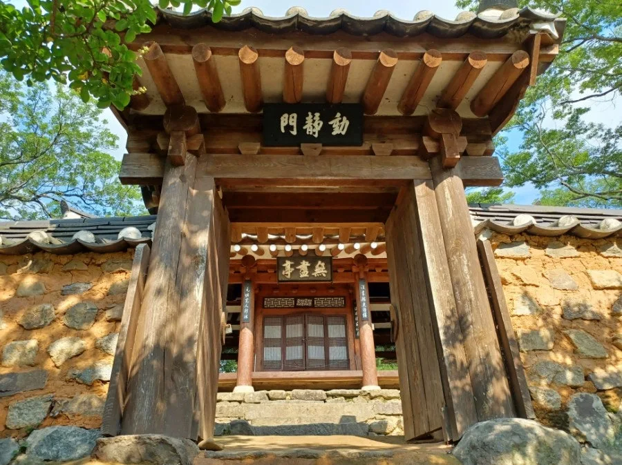 대리석 다리를 건너 언덕 오르면 무진정의 대문인 동정문(動靜門)에 이른다.