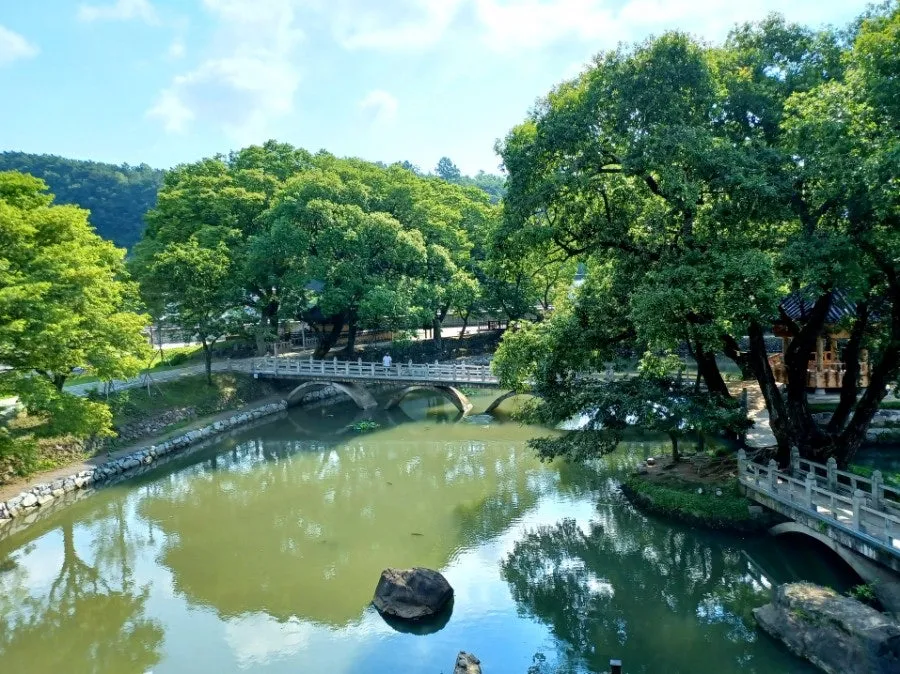 무진정 앞에는 이수정이라는 인공못이 양편 너르게 이어졌으며 연못가에는 수십 그루 노거수 왕버드나무 휘늘어졌다.