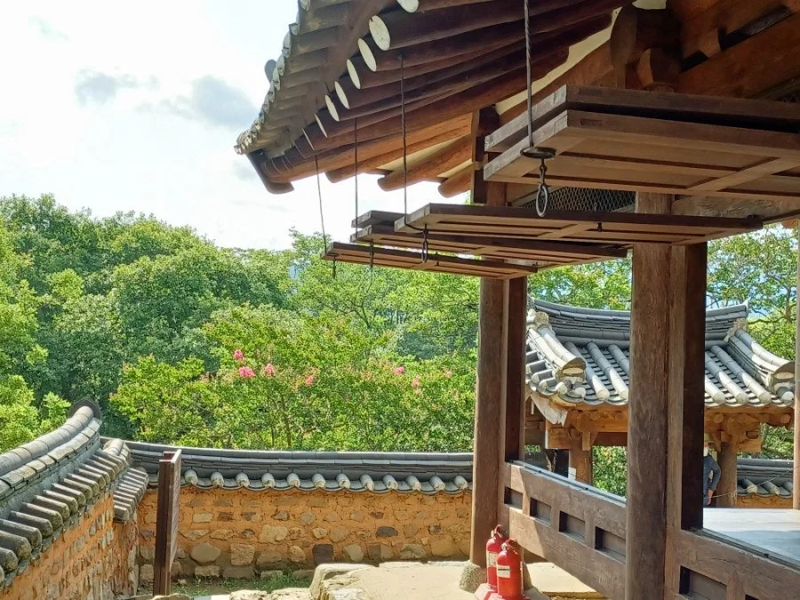 사방 시원스레 들어 올린 창호야말로 더할 나위 없이 멋들어졌으며 시나브로 흩날리는 붉은 배롱나무 꽃잎의 운치는 초절정의 미감으로 각인되었다.