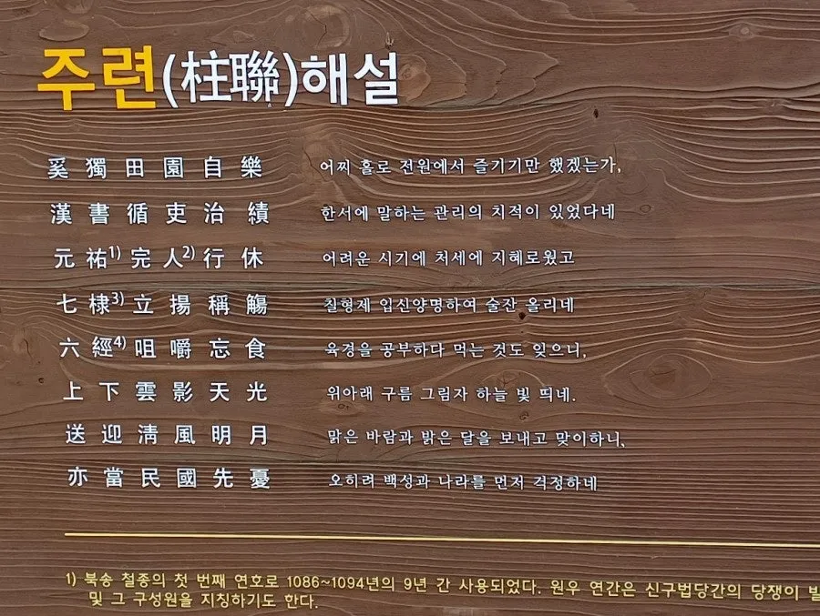 무진정 울안에는 주련 해설문도 서있고 담벼락 가에 주세붕 선생에 대한 안내글이 자상하게 쓰여있다.