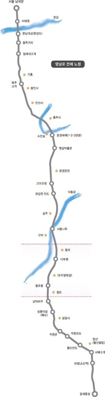 부산 동래에서 양산, 밀양, 팔조령, 대구, 문경새재, 충주를 거쳐 용인에서 한양까지의 약 960리 길을 일컫는다.