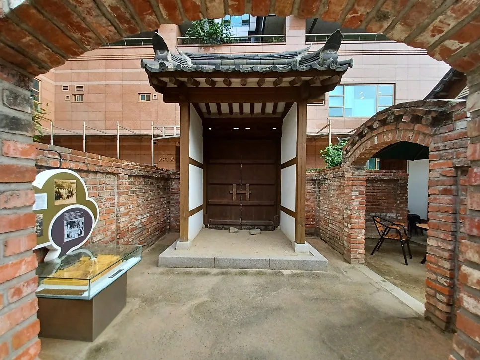 대문 안쪽에 벽돌 담장을 쌓아 출입문을 낸 색다른 구조의 한옥집, 세 칸짜리 별채가 먼저 나섰다.