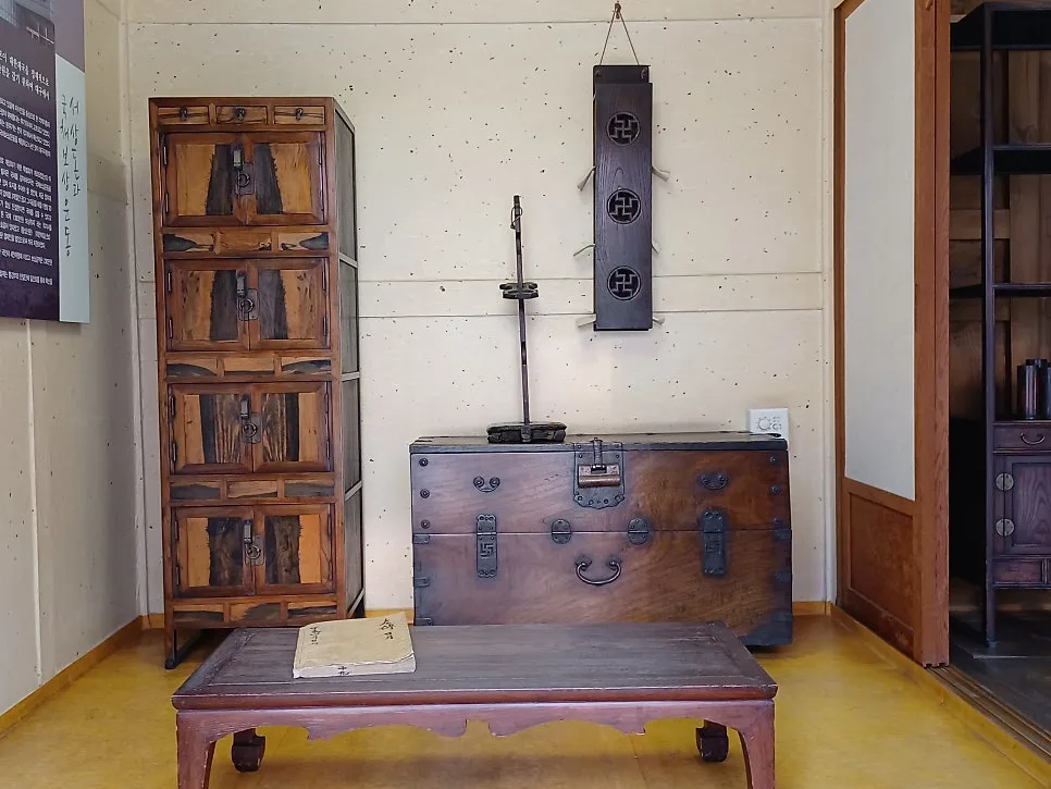 물론 고택에 걸맞는 인테리어 소품에 불과한 먹감나무 사층장과 간결한 사방탁자며 단아한 서안 일지라도 한참 시선이 머물렀다.