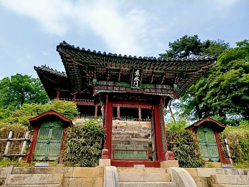 규장각 계단으로 향하면 왕이 드나들던 어수문이 중앙에 서있고 양옆의 좁은 문은 신하들이 드나들던 문. 어수문(魚水門)은 피차 불가분의 관계인 물과 물고기(水魚之交)처럼 떨어질 수 없는 관계라는 뜻인 바, 통치자는 항상 백성을 생각하라는 교훈이 담긴 문이라 한다. 어수문 양켠에는 대나무를 심어 내부가 훤히 드러나는 걸 막아주는 가림막 역할과 공간을 분할하는 담장 기능을 맡겼다. 푸른 병풍이라 이름한 이 전통 울타리는 취병(翠屛), 사철나무나 탱자나무 둘러친 담을 우리는 생울타리라 칭한다.