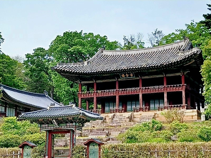 부용지 전면 중앙에 2층으로 웅장하게 솟은 전각인 주합루(宙合樓)는 경사진 언덕 위에 서있다. 1층은 왕실도서관인 규장각이고 누마루로 된 2층 주합루는 열람실이지만 왕실 학문 연구기관으로 설립됐다. 창덕궁 후원에서 의외로 규장각을 만나다니. 말로만 듣던 규장각이 구중궁궐 깊디깊은 여기 있었다니....