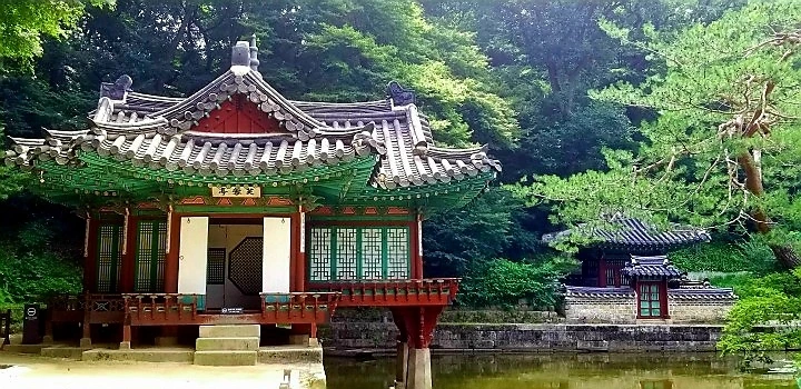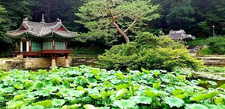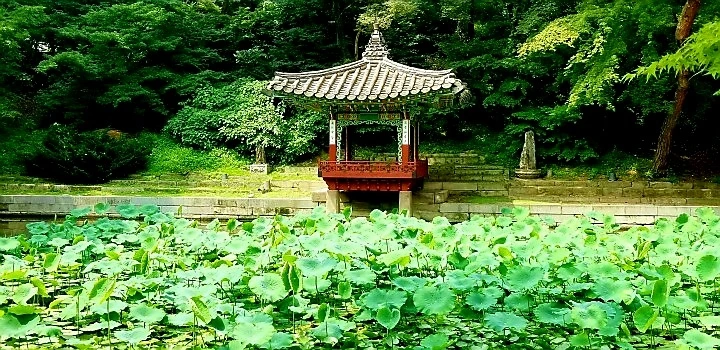 하여지간,창덕궁의 후원(後苑)은 한국에서 가장 아름다운 정원이라는 평가받고 있는 곳이다. 비원 그중에서도 부용지 주변은 빼어난 경관을 자랑한다. 연못 가운데에다 작은 인공섬을 만들어 수형 우아한 소나무를 심어놓았다. 사각형 연못에 둥근 섬을 배치한 부용지는 ‘하늘은 둥글고 땅은 네모나다’는 동양 사상이 담겨있다는데. 활짝 핀 연꽃을 뜻하는 부용, 부용지에 배를 띄우고 군신 간의 연회도 베풀어졌다는 곳. 연못 속에 두 발 담근 열십(+) 자 모양의 부용정은 정교한 목조 공예의 진수를 보여주며 남쪽에 서있다. 동쪽에는 영화당(暎花堂)이라는 아담한 건물이 화강암 장대석 위에 자리하였다.