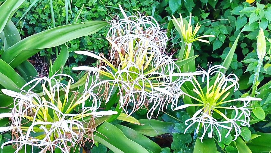 차도에서부터 바닷가까지 길 양옆에 하얀 주단을 깐 듯 무리 지어 만개한 문주란 꽃.