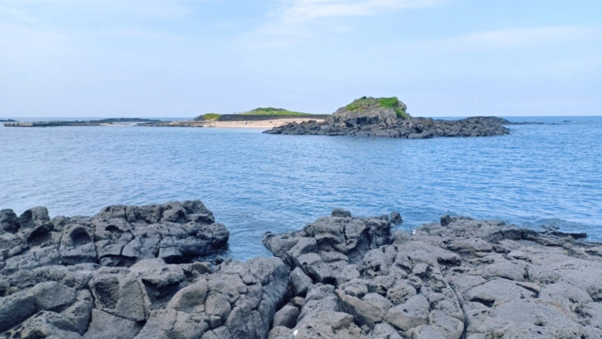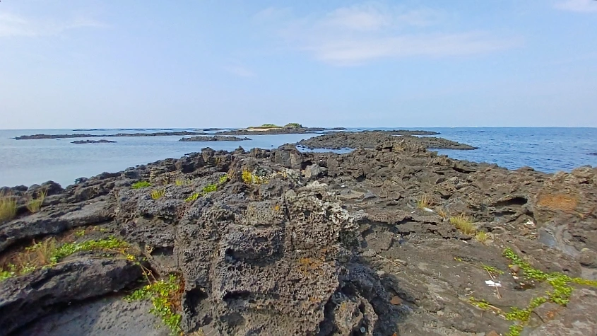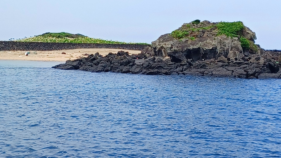 험한 갯바위라 건너뛰기엔 위험해 울퉁불퉁 새카만 화산암으로 휘덮힌 물길을 조심스럽게 건넜다.