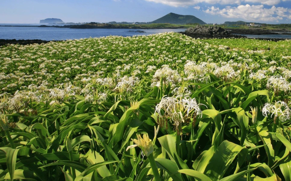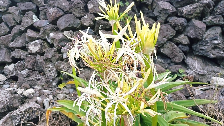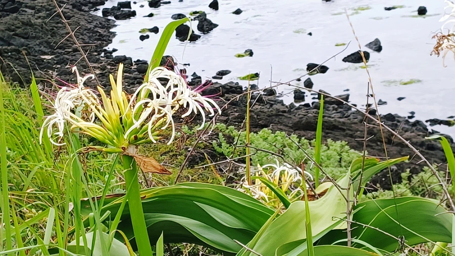 본래 열대지방에서 자라는 문주란인데 해류 타고 흘러온 씨앗이 여기에 뿌리를 내린 것으로 추정된다.