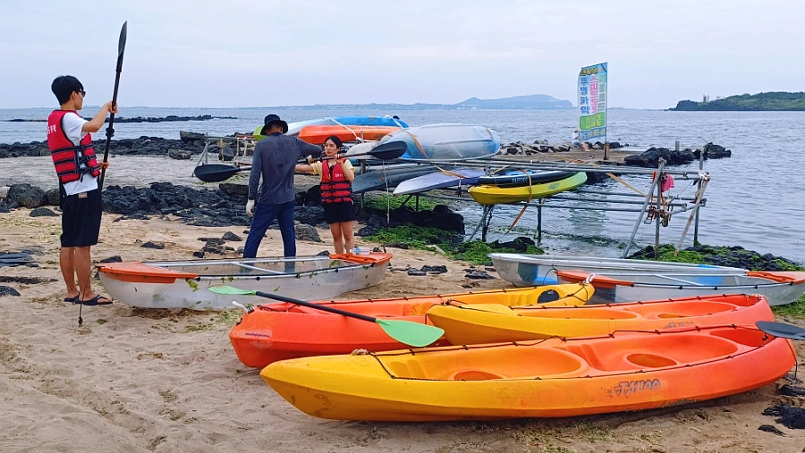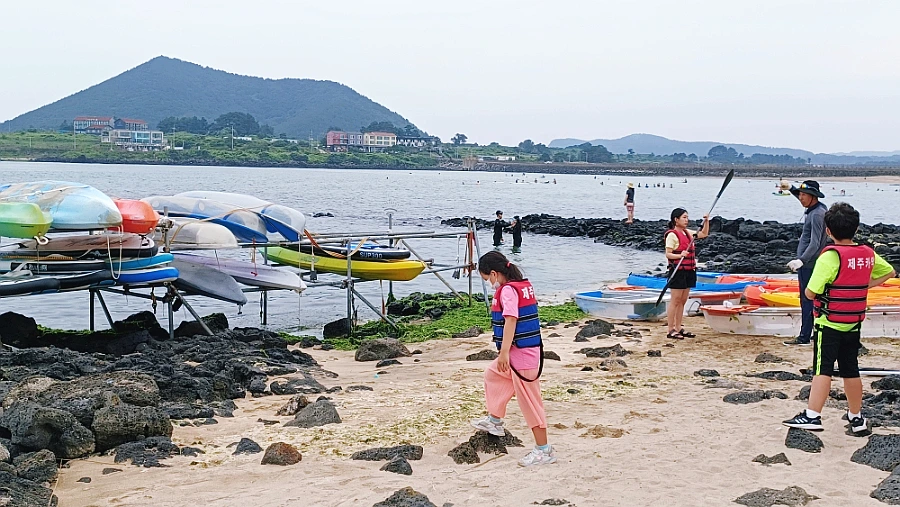푹신 젖은 트레킹화를 신은 채 터덜터덜 하도 해수욕장으로 향했다.