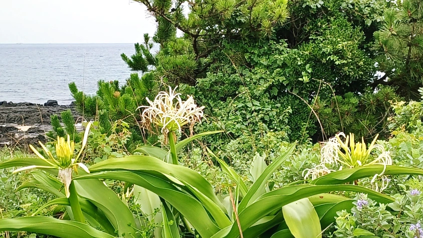 서귀포 공원 여기저기 문주란 꽃이 피어나자 동쪽으로 가는 버스에 올랐다.