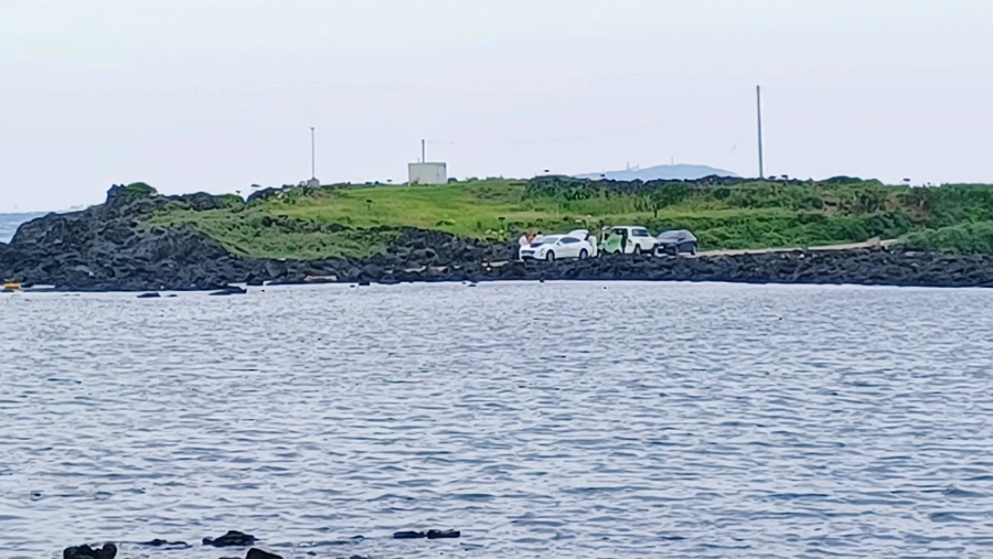 해녀들 탈의장 겸 쉼터인 불턱을 지나는데 잡초 무성한 현무암 건너 동쪽 해안에 하얀 옷차림 행렬이 보였다.