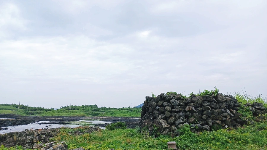 밀물과 썰물의 차이를 이용해 고기를 잡는 제주 전통 방식인 원담 멀튼개는 현무암이 만든 지형지물 덕에