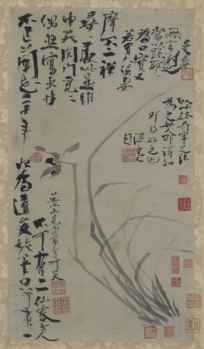 이 작품엔 유다르게도 추사가 낙관을 다섯 번이나 눌렀고 그 외 여러 인장은 소장인과 감상인이 찍은 것이라고.