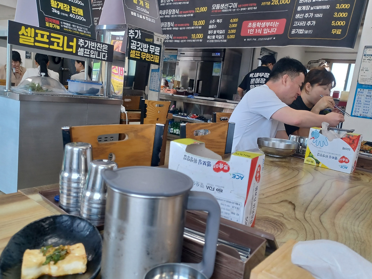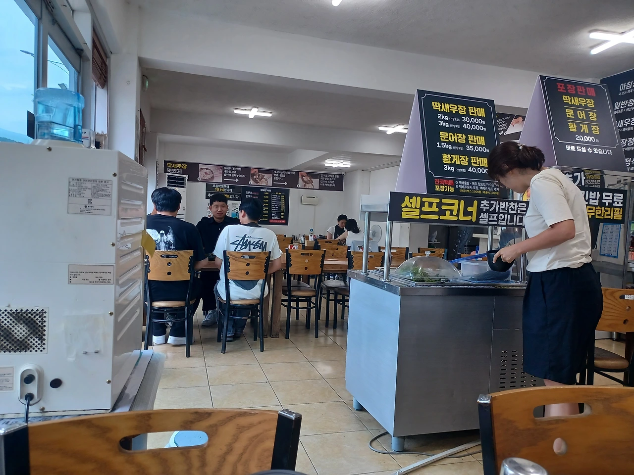 추가 반찬은 셀프로 먹을 만큼 더 떠오면 되고 혹시 많이 시장했다면 밥 한공기도 무료로 제공돼요.