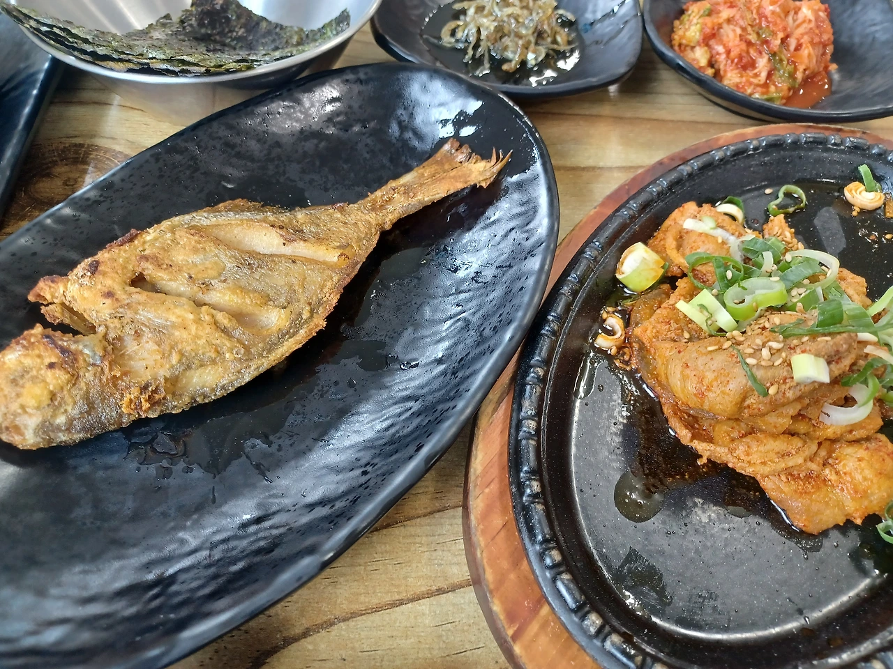 아래 밥집은 가정식처럼 정갈한 상차림에 절기 따라 다른 각종 밑반찬과 빠짐없이 등장하는 돈육볶음, 생선튀김, 두툼한 두부부침 압권이며 누기 없이 빳빳한 김과 상추쌈 매번 깔끔 푸짐하더군요.