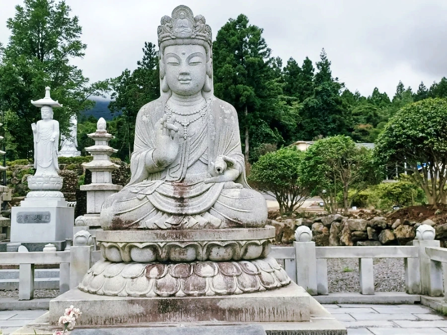 그 뒤로 약병을 한 손에 받쳐 든 약사여래상 자애로운 미소 살푼 머금었다.