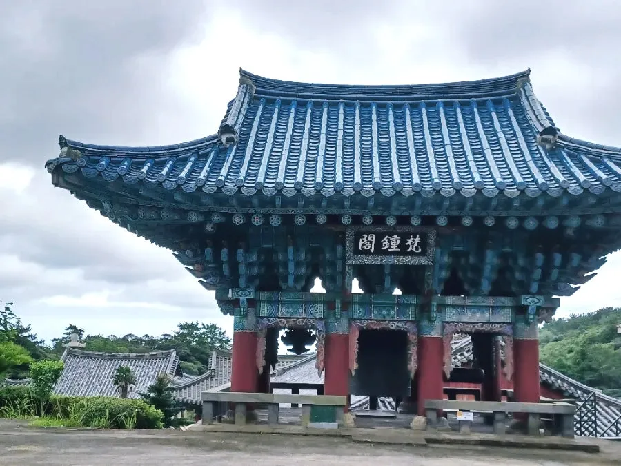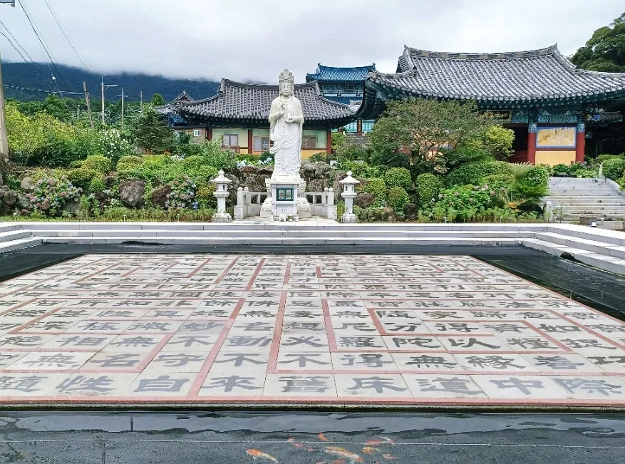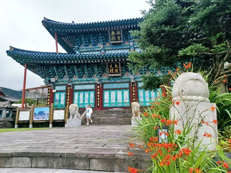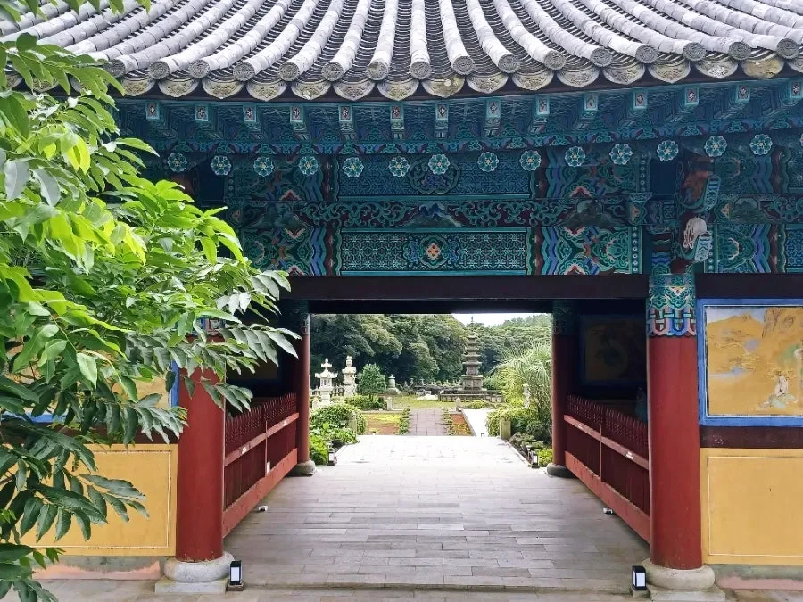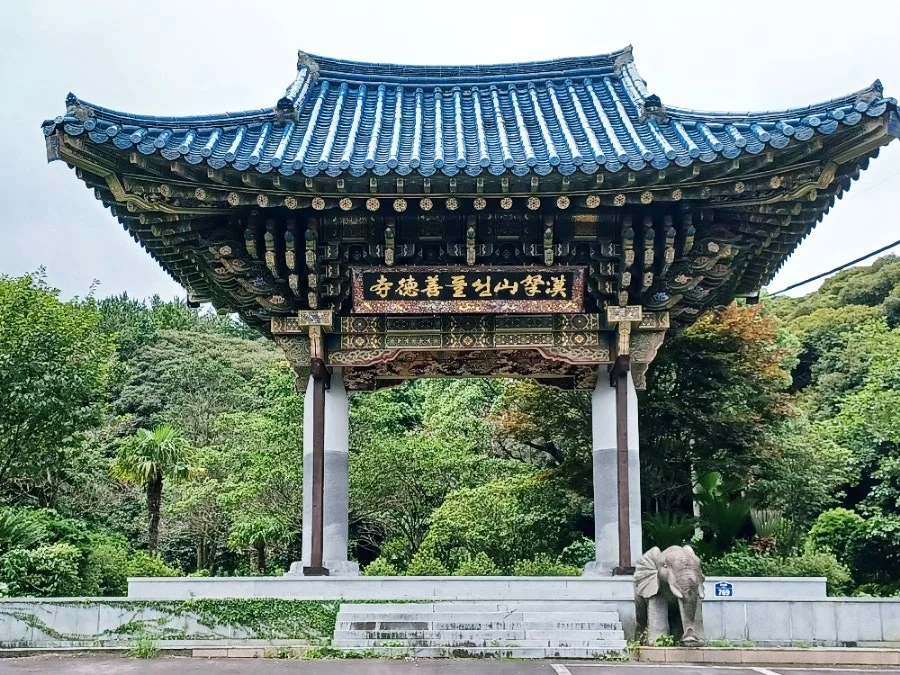 '한라산선돌선덕사'란 현판이 청기와를 인 일주문 위에서 반긴다.