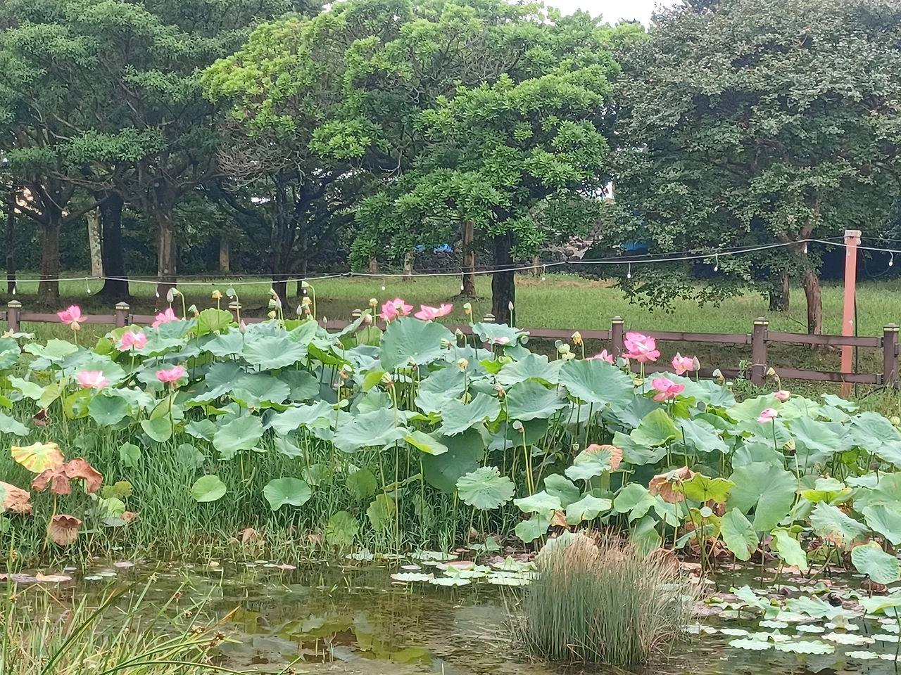 비암을 조심해야 되는 못 가라서 발치에 신경 쓰며 연당을 한바퀴 도는데 연 줄기 빡빡한 물속에서 꾹꾹 거리며 텀벙대는 소리가 들려 바짝 긴장이 됐다.