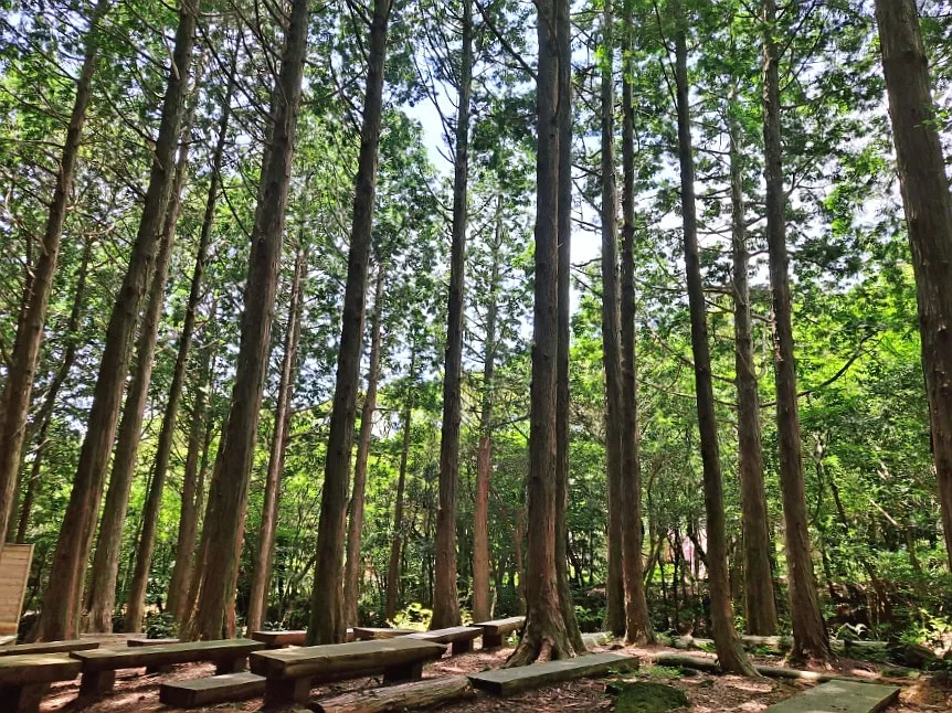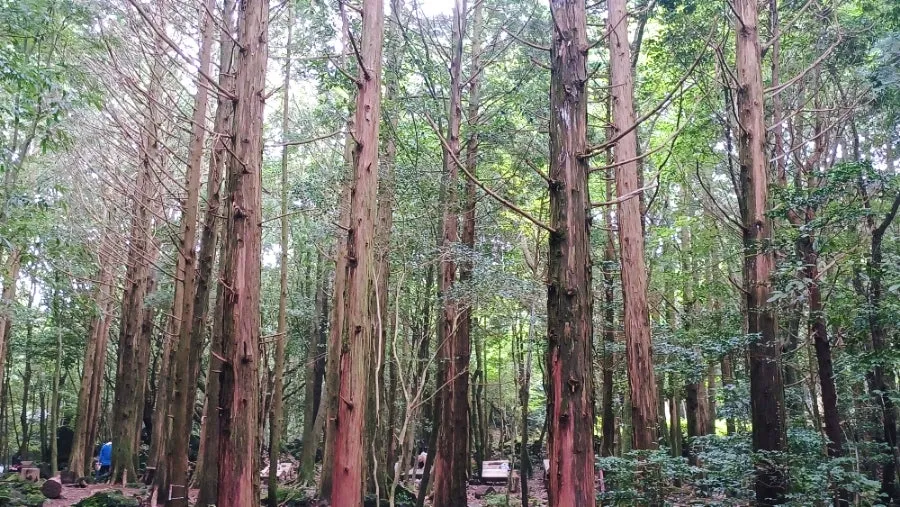 편백나무 삼나무 밀밀한 숲이라 모기약도 필요 없었다.