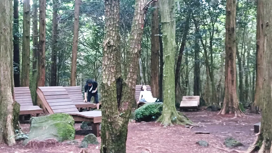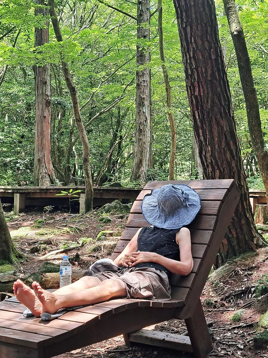 편백 숲 속 쉼팡엔 누워 쉴 수 있는 목제 의자가 여럿 마련돼 있기에 목향에 취해 한참을 누워 있었다.